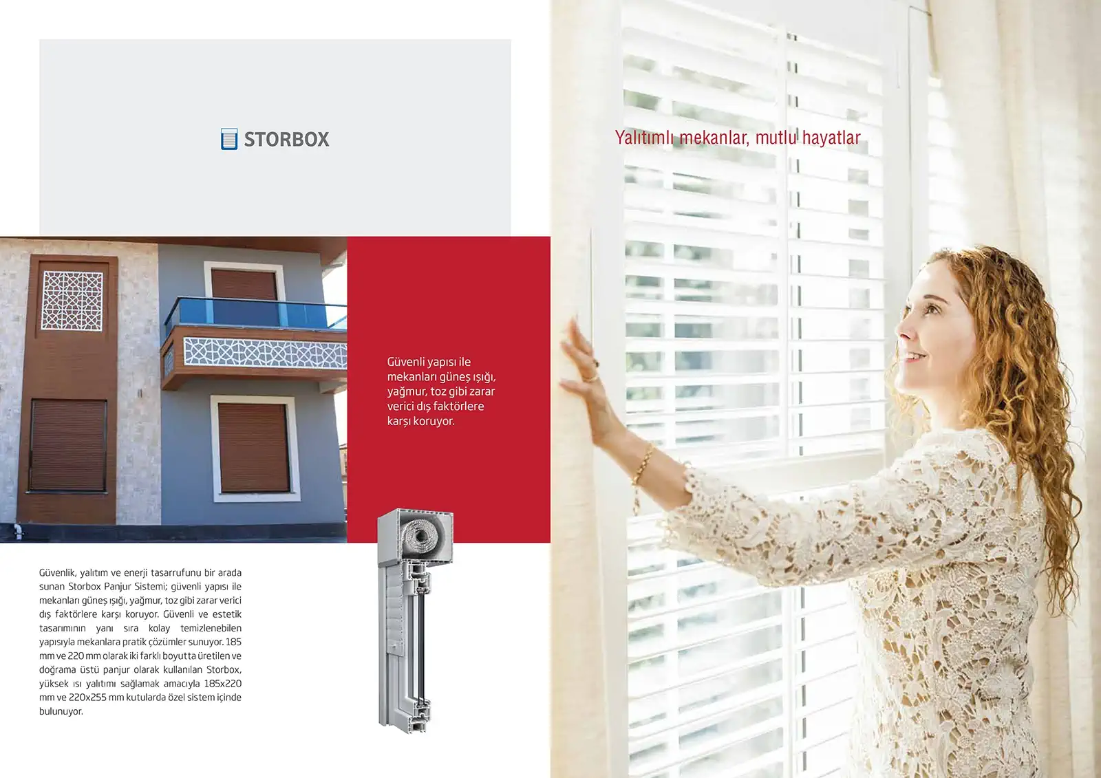 Egepen Storbox Panjur ve Kepenk Sistemleri, Bina Cephesi ile Uyumlu Kompozisyonlar Oluşturmanıza Olanak Tanır. Farklı Renkte Laminasyon Uygulamaları ile Pencere ve Kapınızla Tam Uyum Sağlar. Egepen Storbox Panjur, Gürültünün Azaltılmasını Sağlar ve Odaları Yazın Aşırı Isınmaya Karşı Korur.